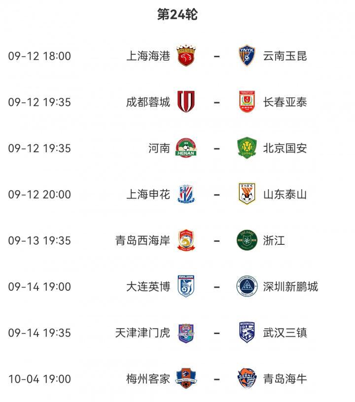 直播吧09月12日讯 中超重燃战火,前4球队今天纷纷出战,蓉城对阵倒数第一但进来状态不俗的亚泰,申花大战泰山,海港主场迎战客场战绩糟糕的玉昆,国安客场挑战河南。