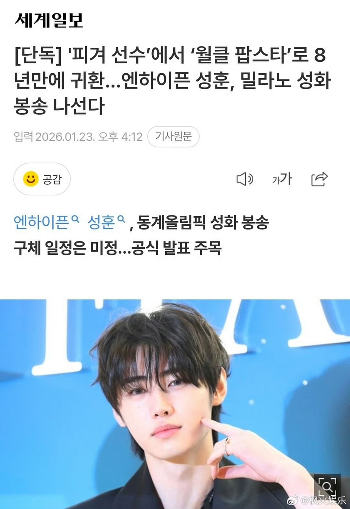 #朴成训米兰冬奥会火炬手##朴成训冬奥会火炬手# 朴成训担任米兰冬奥会火炬手