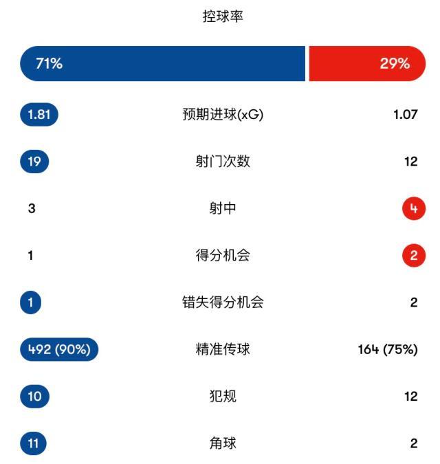 第13分钟,埃泽直接任意球破门,VAR介入后,认定格伊在人墙中违规推搡防守球员,进球无效。按照规则,主罚任意球时,进攻球员须至少离开守方人墙1米。