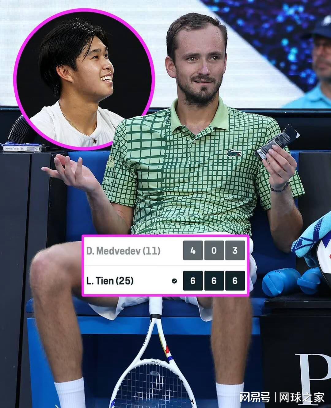 不管怎样,现在对于梅德韦杰夫来说,好消息是:去年四大满贯仅胜一场的他,本届澳网已提前超额保住去年四大满贯的积分,接下来就全是涨分空间。但考虑到面对这位一年前还打得难分难解的对手,如今却吞蛋收场,这对于梅德韦杰夫来说,或许会让他本就对勒纳.钱的心理障碍变得更重,至少从现在来看,梅德韦杰夫最不想遇见的巡回赛选手,绝对不是辛纳或者阿尔卡拉斯,而是这位名不见经传的美国小将——勒纳·钱。